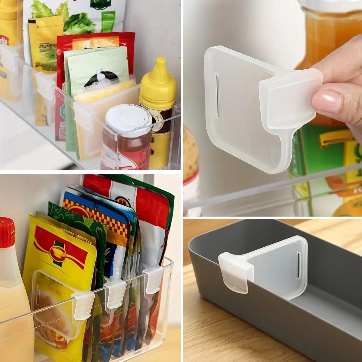 - 10’lu Set: Buzdolabı kapılarında veya raflarda kullanılabilen 10 adet pratik düzenleyici içerir.