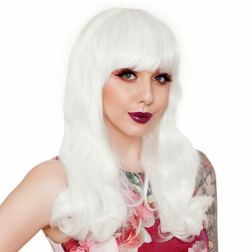 Beyaz Renk Dalgalı Uzun Parti Peruğu