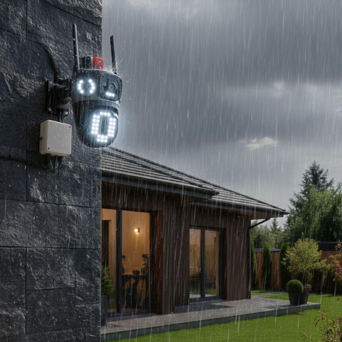 Kablolu Akıllı Güvenlik Kamerası – 4 Kameralı Çok Lensli, 360° PTZ Hareketli, Çift Antenli, Gece Görüşlü, Dış Mekan IP Kamera