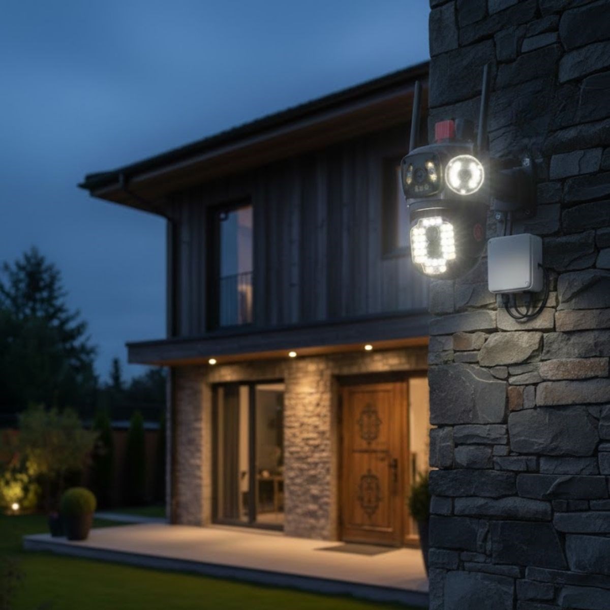 ???? Kablolu Akıllı Güvenlik Kamerası – 4 Kameralı Çok Lensli, 360° PTZ Hareketli, Çift Antenli, Gece Görüşlü, Dış Mekan IP Kamera